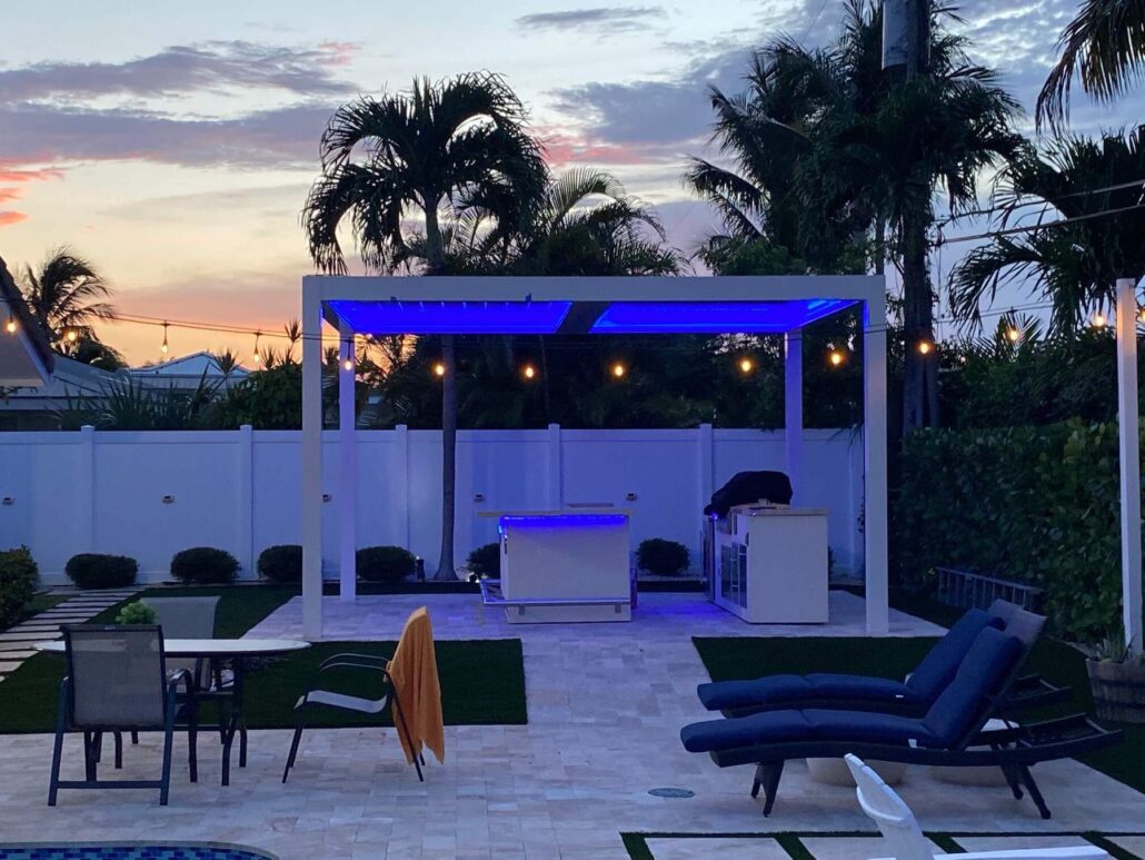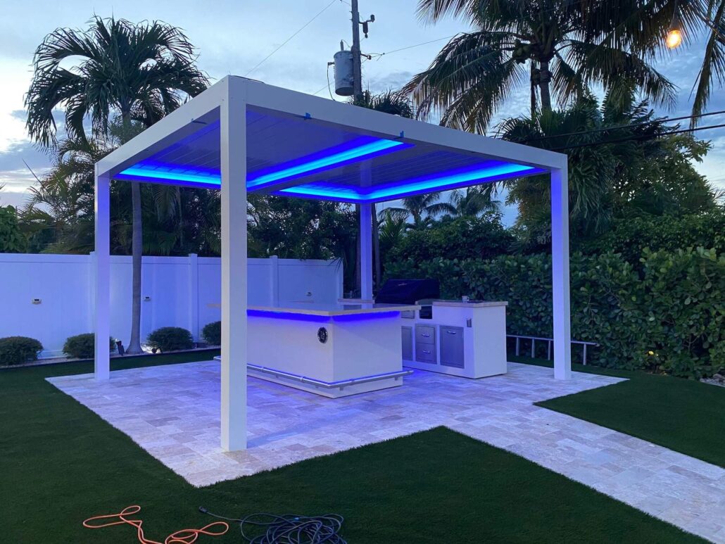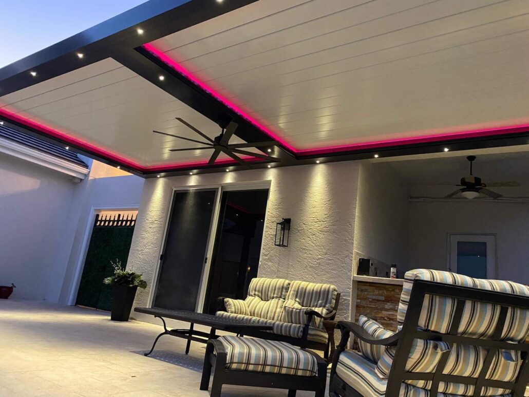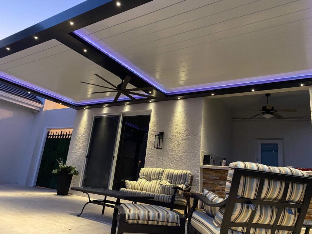 Bring a whole new dimension to your outdoor space with landscape lighting. Line your louvered pergola with LEDs creating a memorable ambiance for your and your guests. An evening dinner or sports get-together is a whole new experience when the lights turn on.